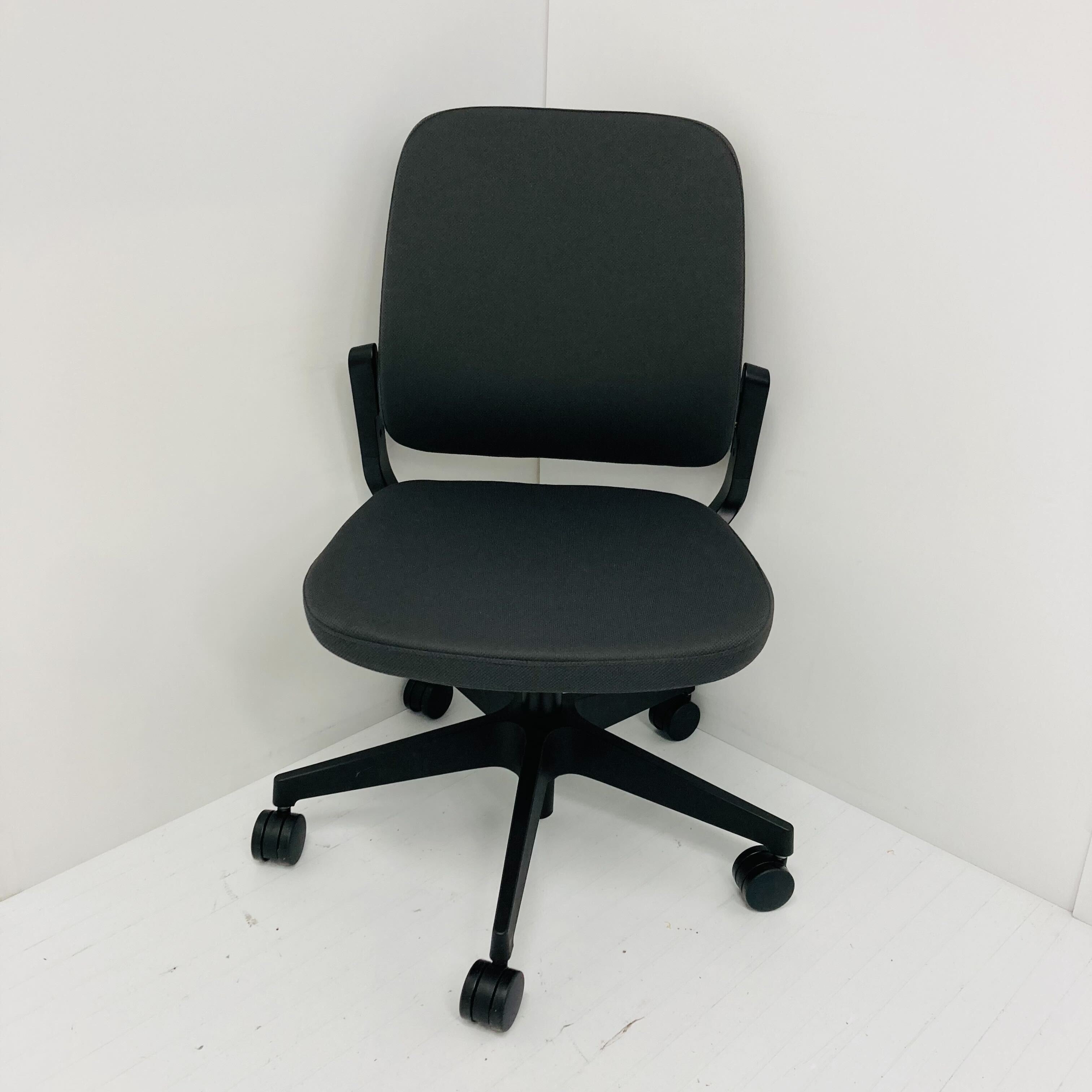 levi(レヴィチェア)は、イトーキのオフィスチェア。シーンで選ぶ。装いで選ぶ。新感覚のスマートなチェアです。装飾をそぎ落とした、スマートデザイン。ワークシーンに合わせて、多彩な仕様・ファブリックからセレクト。さまざまな空間にフィットします。カタチはシンプルに、装いは豊かに、豊富な張地展開やボタン締めなど、空間にふさわしいコーディネートにお応えします。共生地の包みボタンで、背にアクセントをつける、個性的な演出も可能です。快適で機能的に、操作はスマートに。身体を優しく受け入れる柔らかな座り心地を追求。デスクワークや打ち合わせでも快適性を高める機能をもち、調節操作も使いやすく、ワンアクションで操作可能。背にもたれると操作レスでロッキングし、作業姿勢から休息姿勢をサポート。シンプルなフレームデザインと、浮遊感のある座面構造も特徴です。オフィス全体をトータルにコーディネートできる多彩な仕様となっており、執務スペース、ミーティングスペース、会議室など、空間に合わせて、肘や脚の仕様を選択することが可能です。
