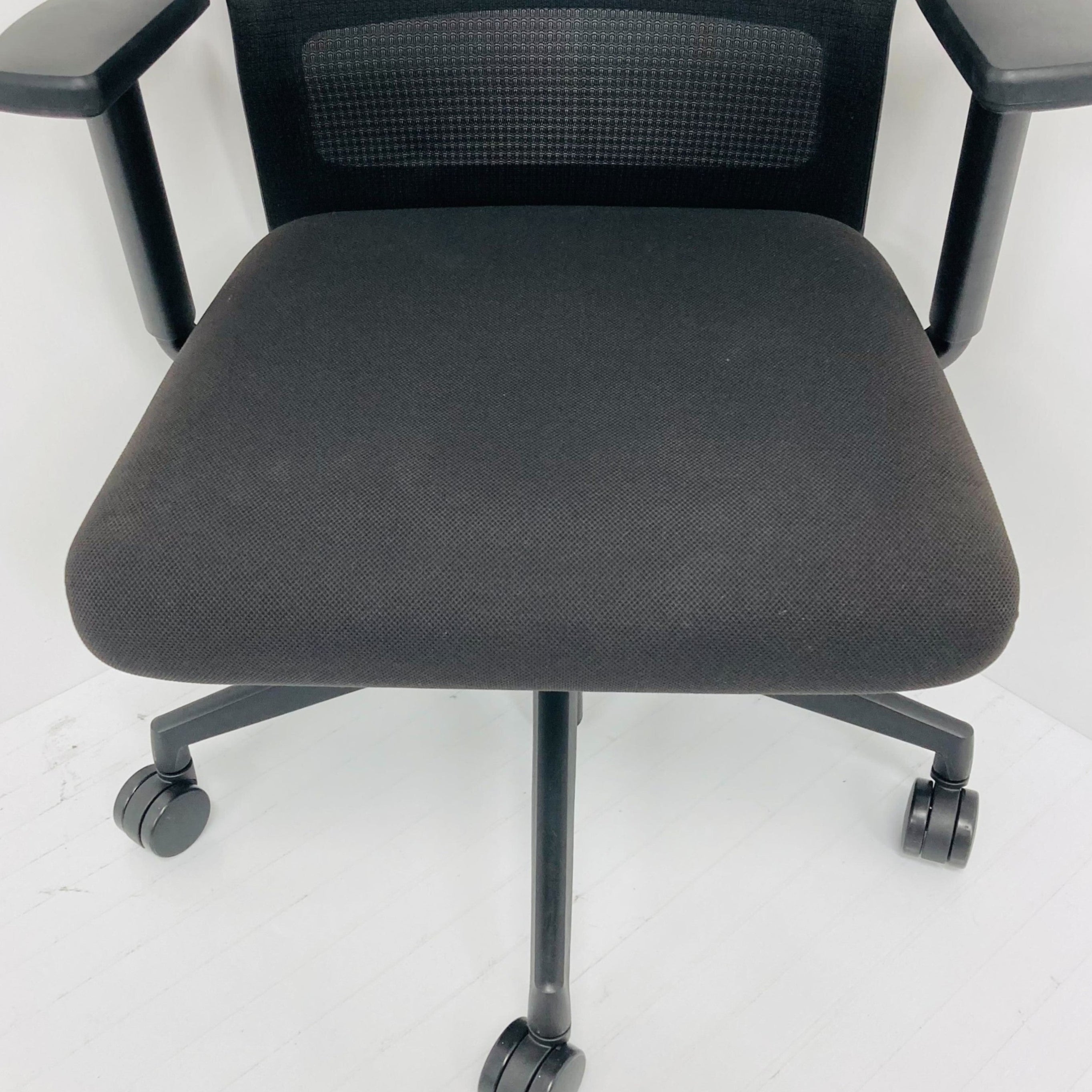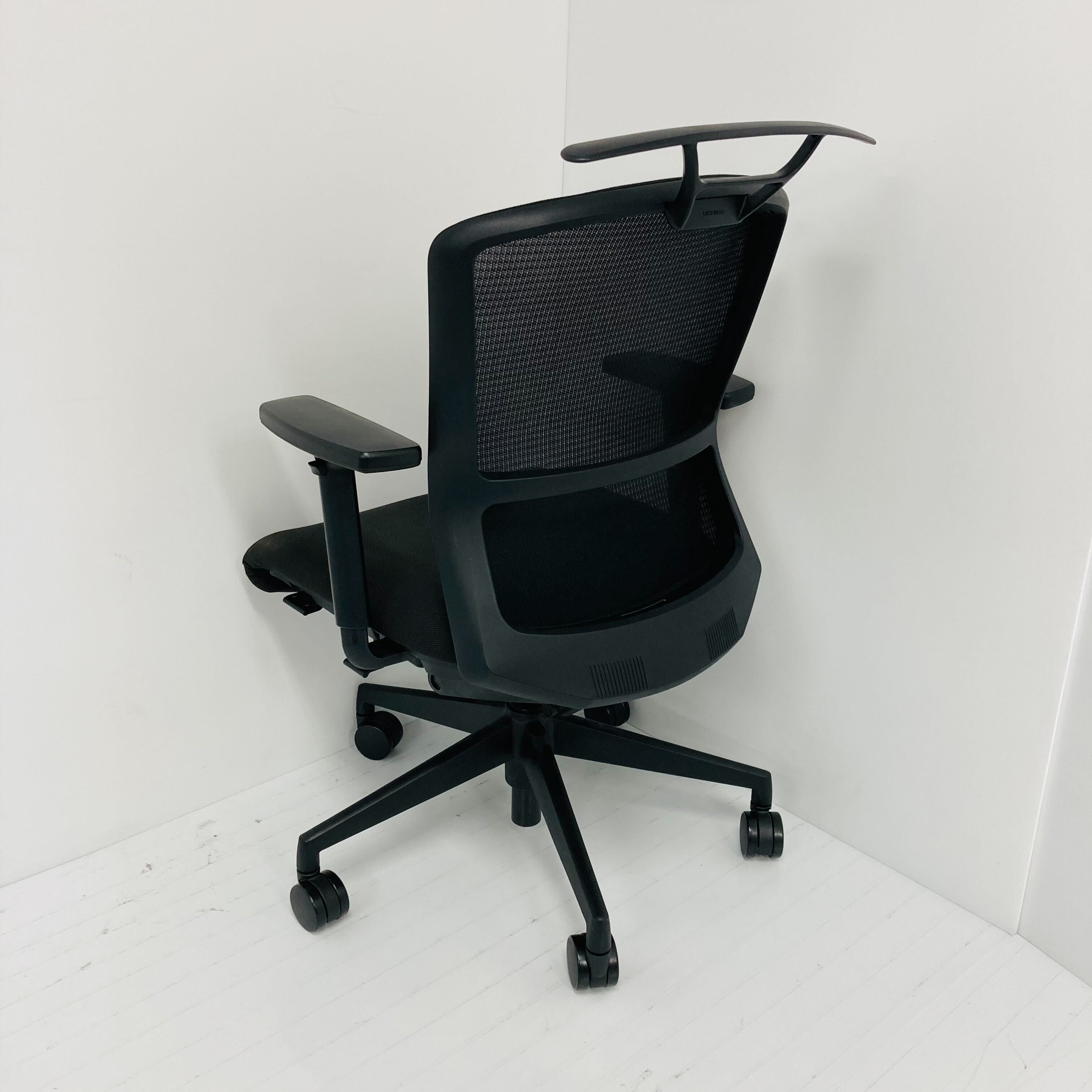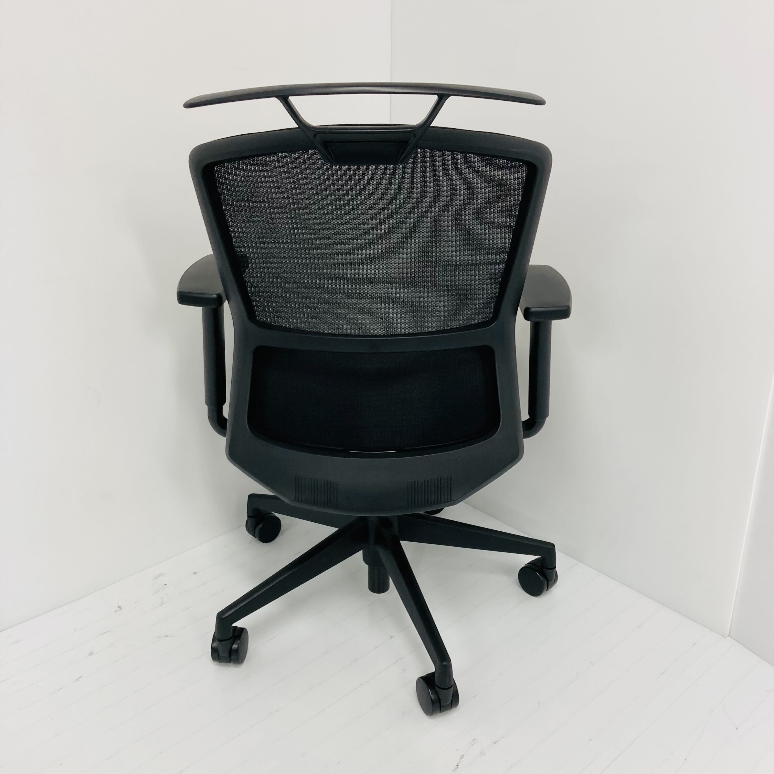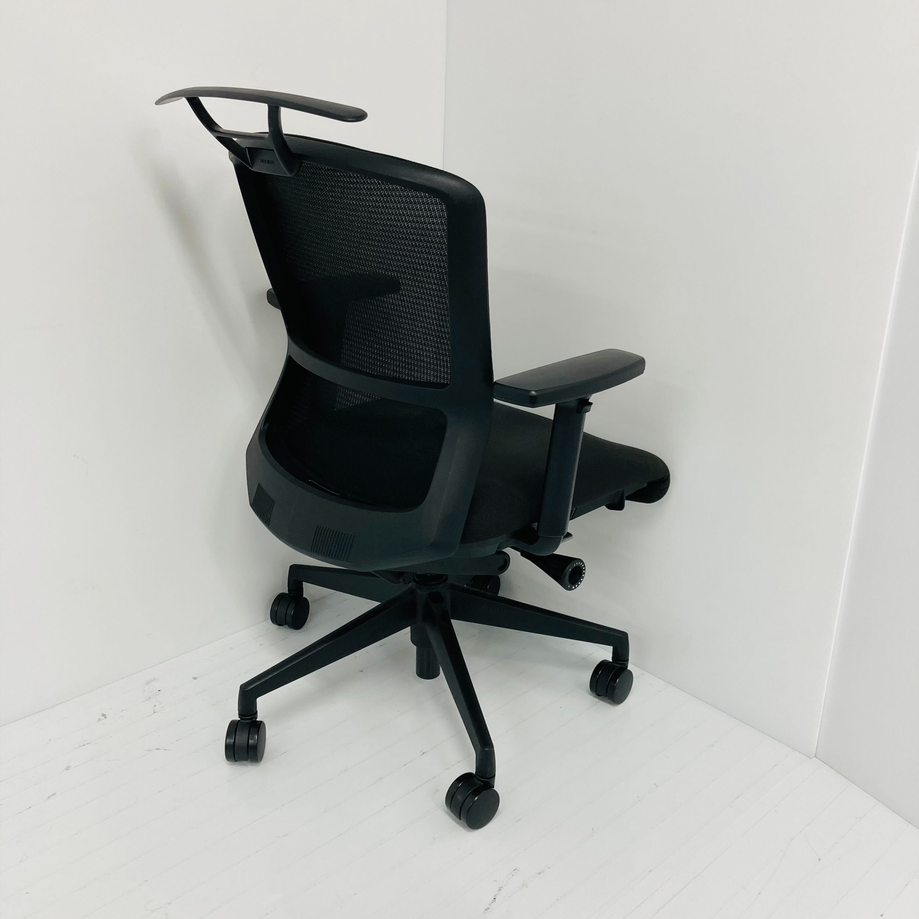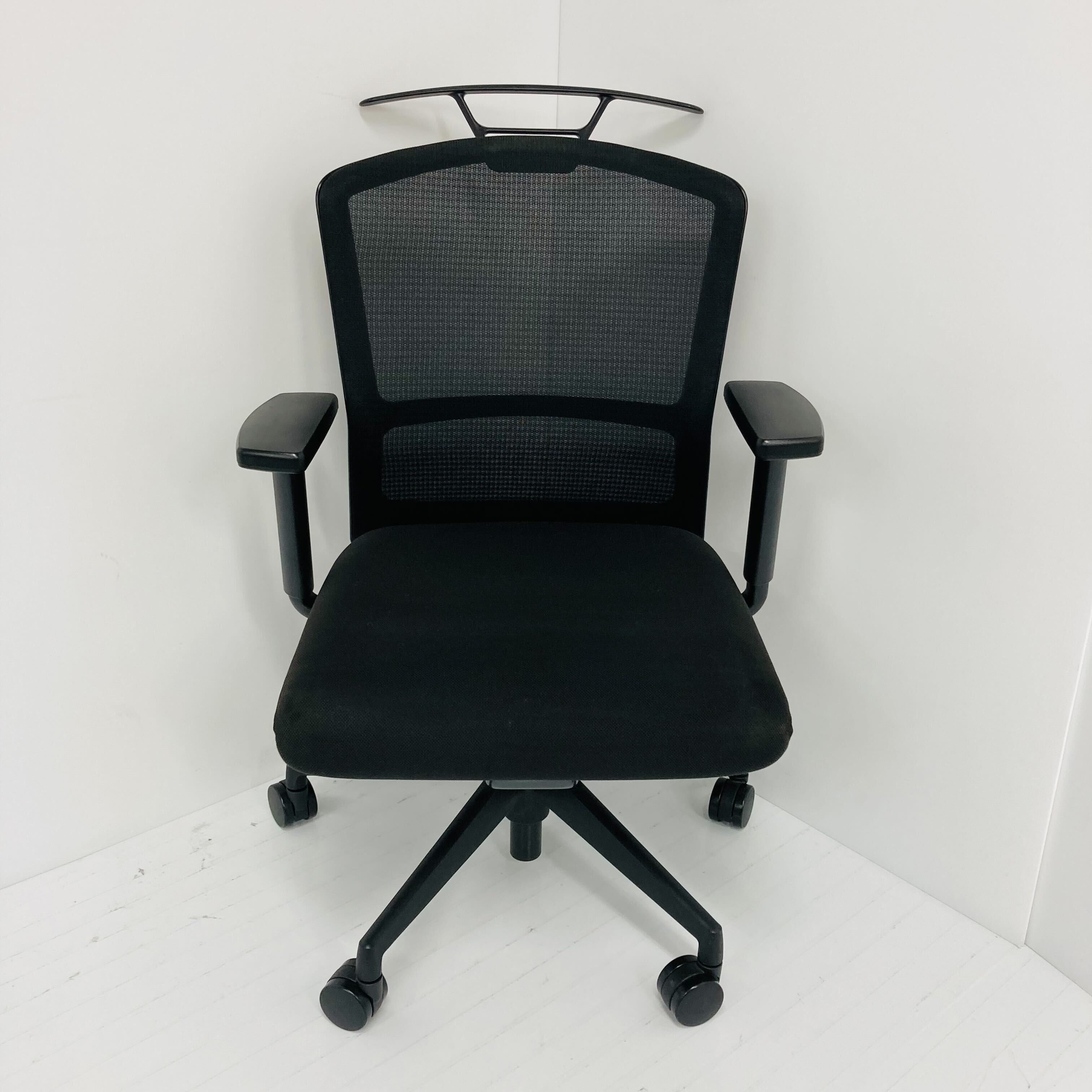 ブラックフレーム メッシュタイプ ミドルバック ブラック脚 ナイロンキャスター アジャスタブルUHB型肘付 ハンガー付