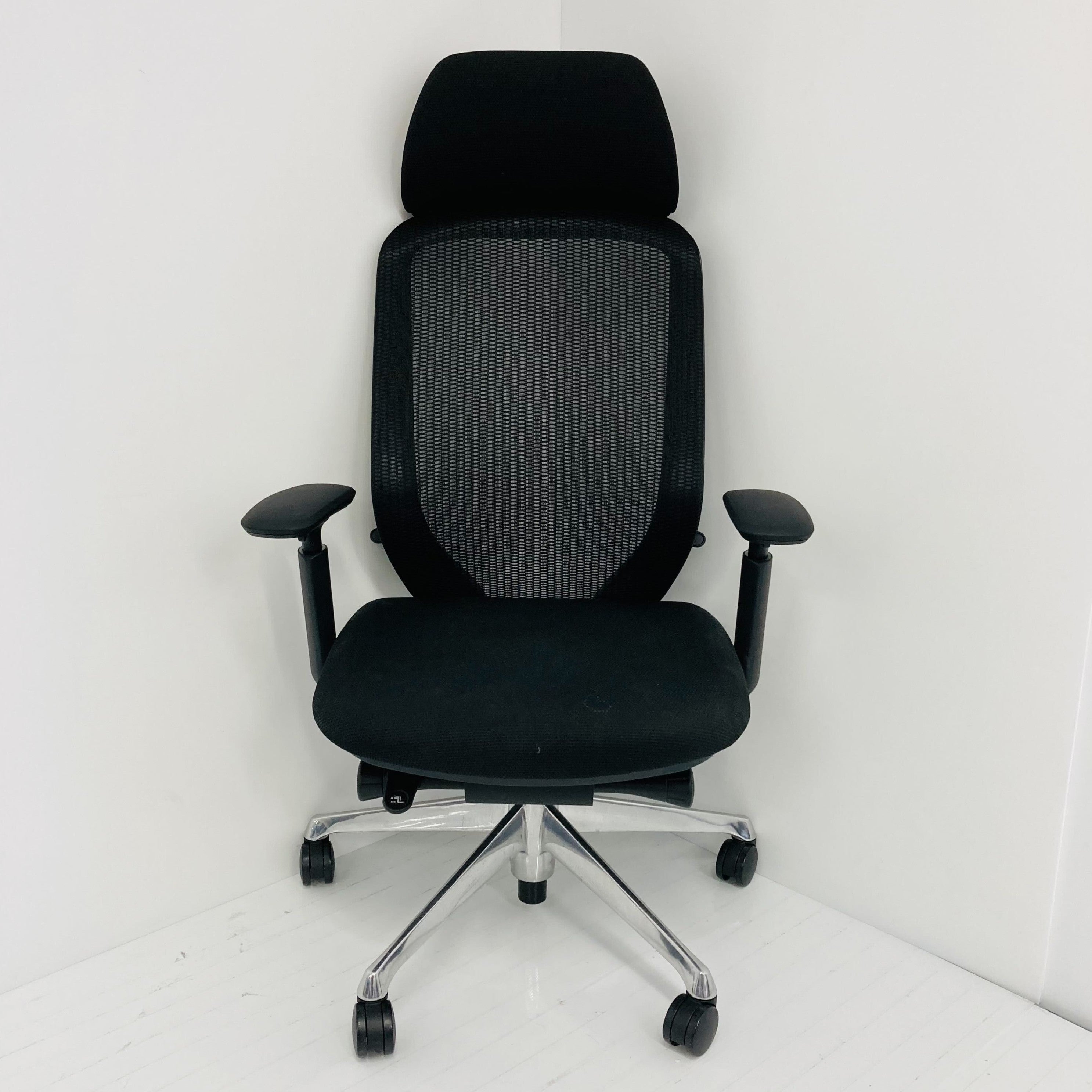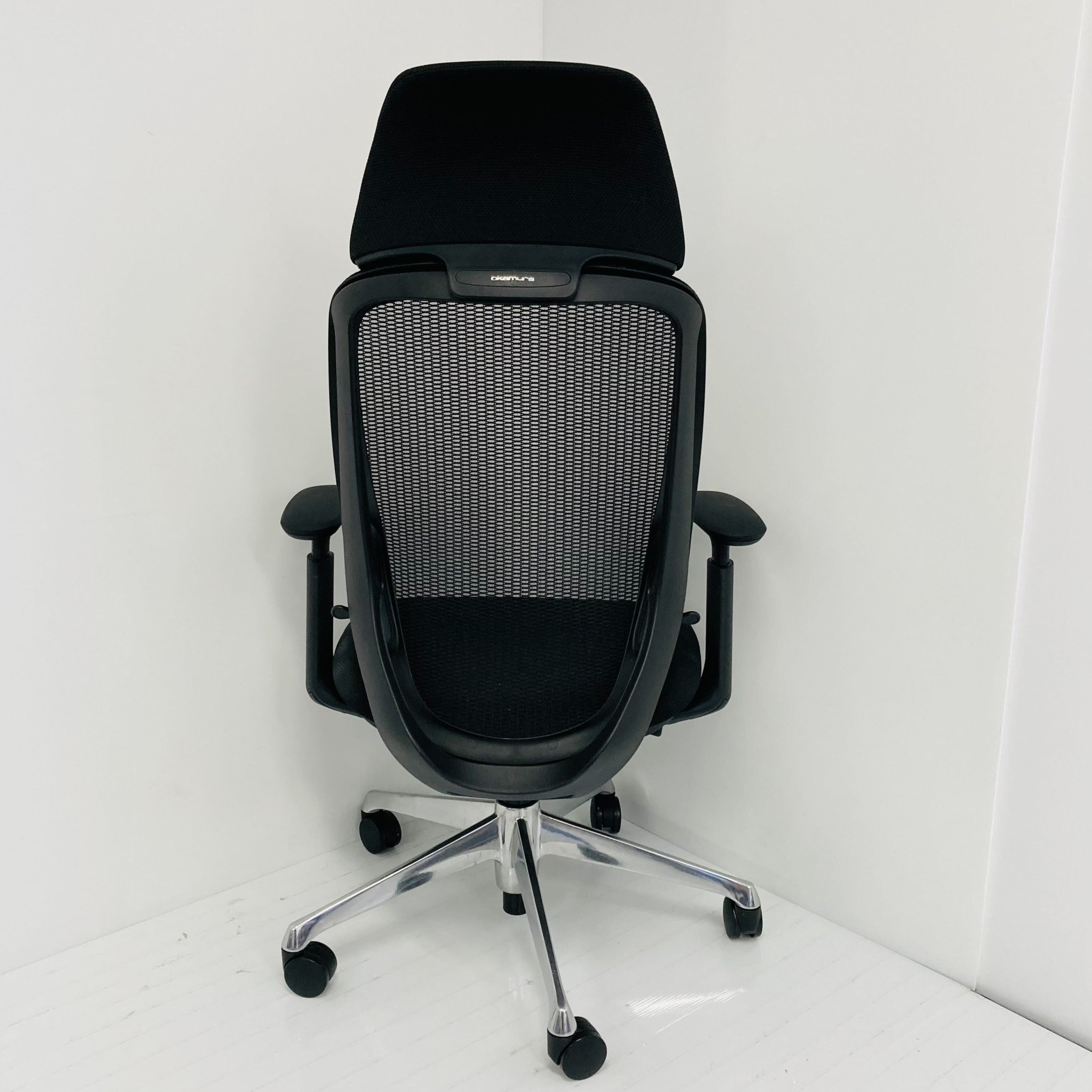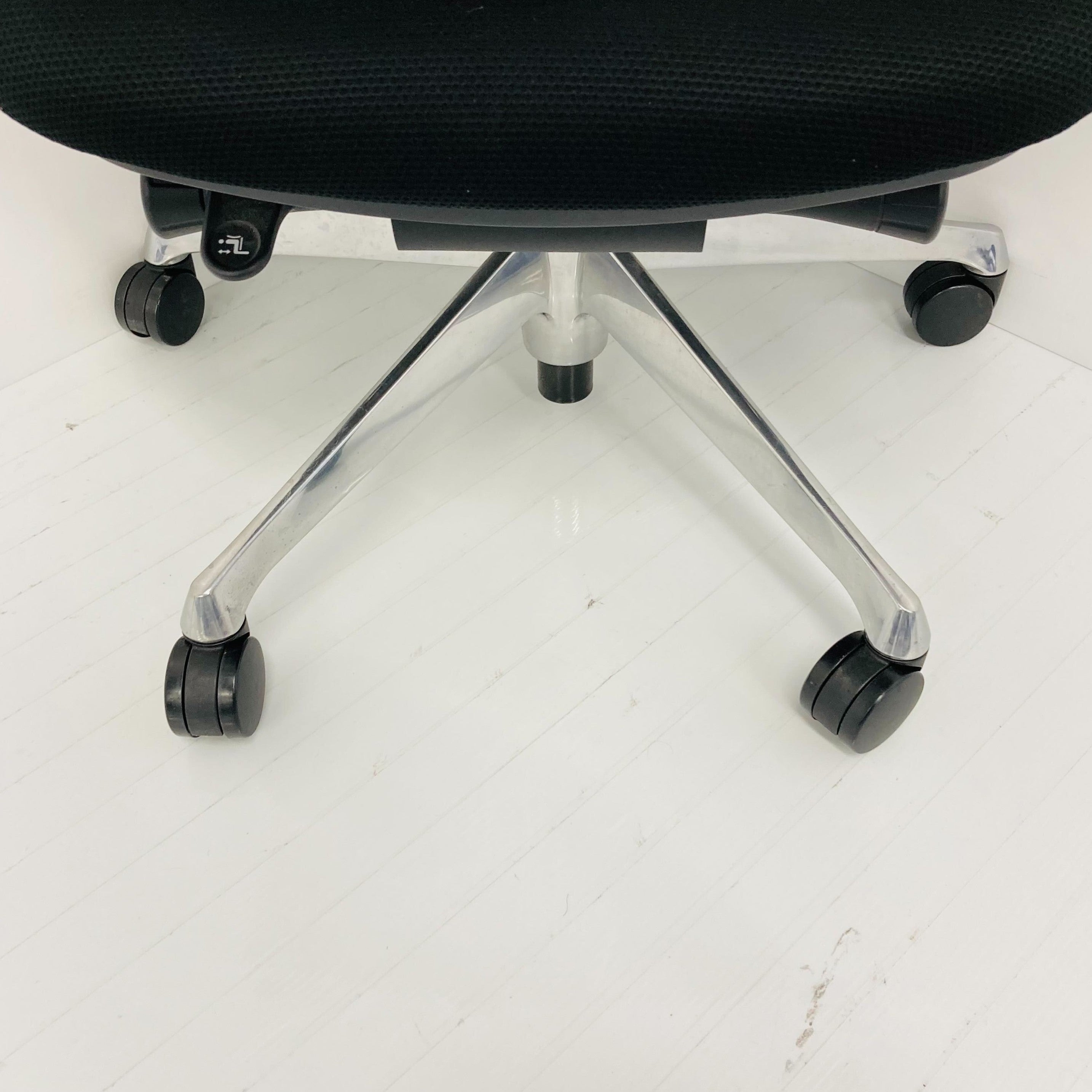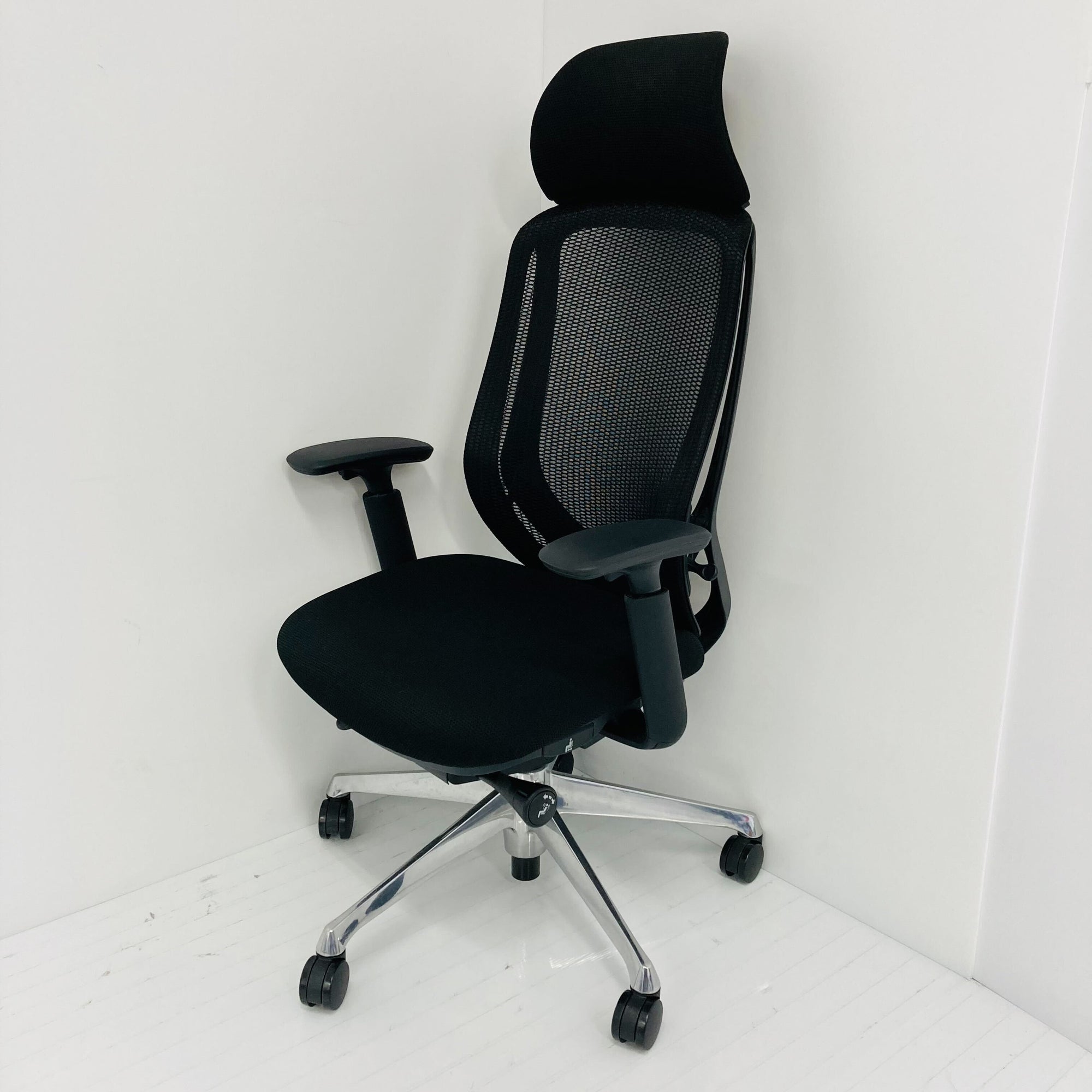 エクストラハイバック メッシュタイプ アジャストアーム付 ブラックボディ アルミポリッシュ脚 ナイロンキャスター