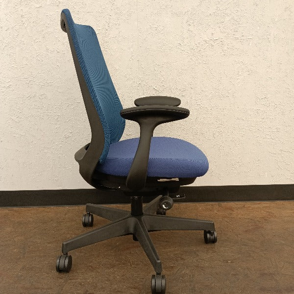 ポータムはオカムラのオフィスチェア。内部に角度をつけたスムースフィッティングアームは、よりコンパクトな設計に。スマートフォンなどのデバイス使用時に、丸みを帯びた形状は柔らかく肘や腕を支えます。さまざまなワークシーンと調和するデザイン。高さを抑えたショルダーレストは、肩と首をしっかりと支え、執務動作を快適にサポートします。背面下部にある半月型の形状。心地よい抜け感により、スタイリッシュな表情を際立立てます。不要になった端材から生まれた張材の活用や、リサイクル樹脂脚を新たに採用することで、循環型経済を実現したオフィスチェアです。